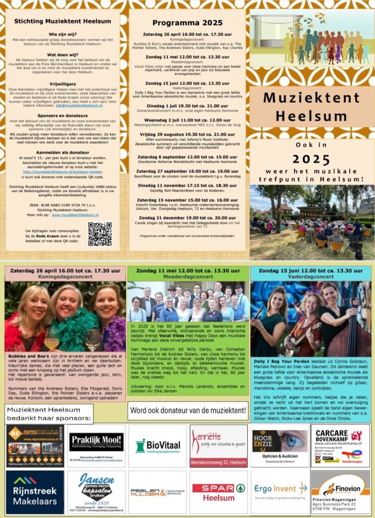 De muziektent Heelsum kan haar evenementen organiseren, dankzij de bijdrage van onze donateurs en sponsoren: