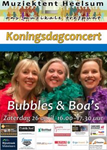 Welkom bij Koningsdagconcert van Bubbles & Boa’s op zaterdag 26 april van 16.00u tot 17.30u